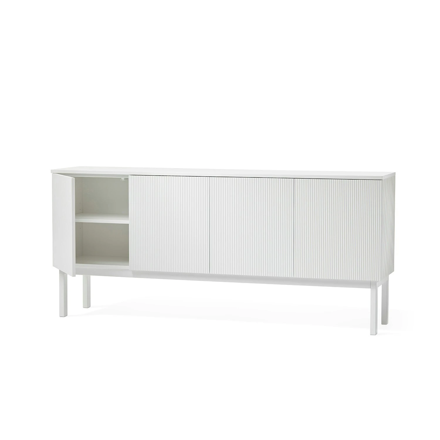 Schrank Beam von A2, Design von Sara Larsson. Der Schrank Beam hat ein modernes, jedoch klassisches und zeitloses Design. Die Vorderseite und Seiten des Schranks sind mit schmalen Kerben dekoriert, was dem Schrank einen einzigartigen Charakter verleiht. Der Schrank passt hervorragend in verschiedene Räume wie Büro oder Schlafzimmer. Der Schrank besteht aus lackiertem Holz und MDF.