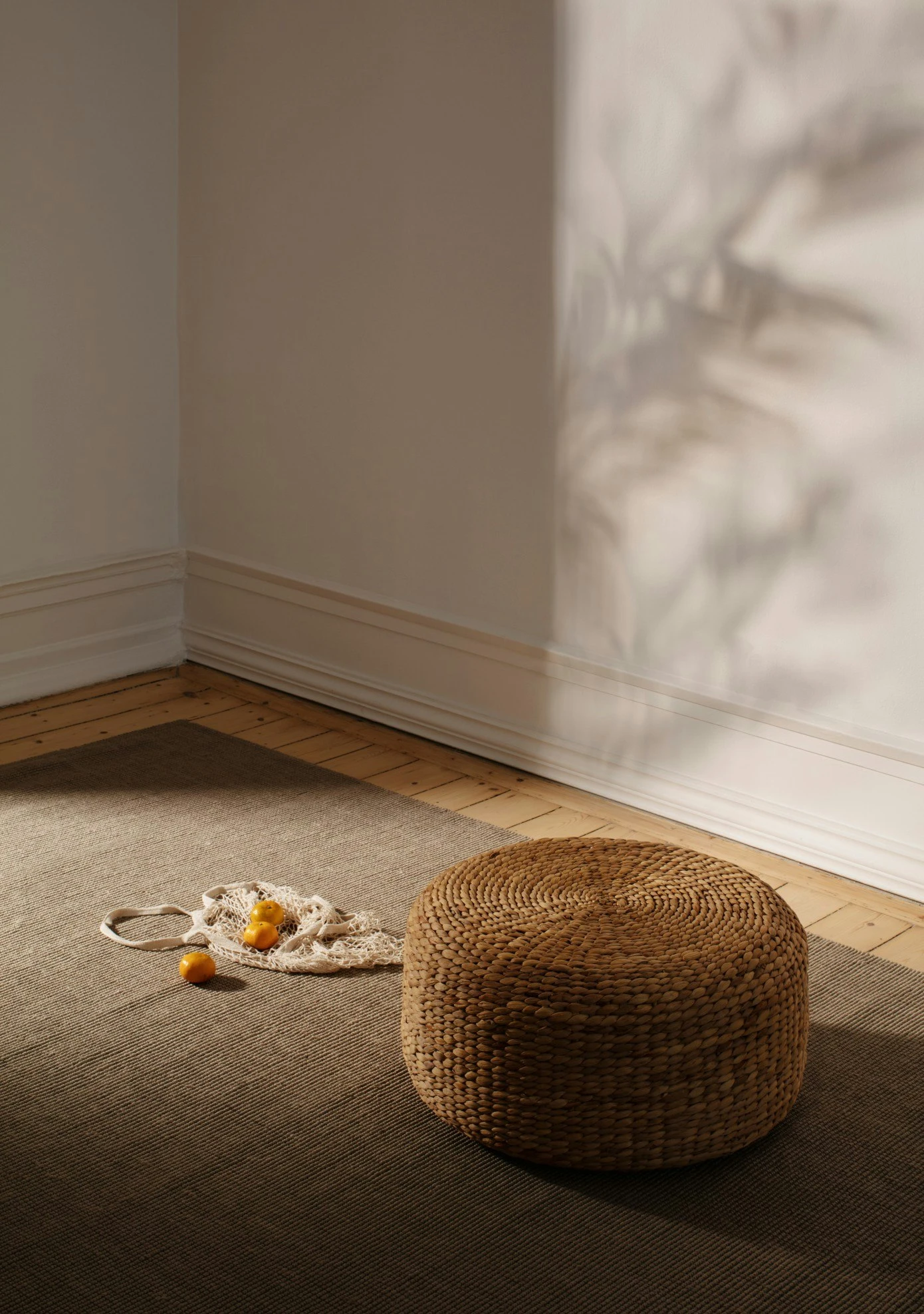 Pouf Round ist ein Sitz von Dixie aus handgeflochtener Wasserhyazinthe, einer schnell wachsenden Lilienpflanze. Die Pflanze wächst frei wie Unkraut und bedeckt große Bäche in Vietnam. Dies macht das Material perfekt, um Körbe und andere Dinge herzustellen.