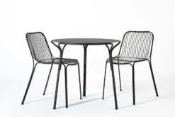 – Er ist aus pulverbeschichtetem Stahl in verschiedenen Farben hergestellt und hat eine zylindrische Form mit drei Regalböden und Rädern.