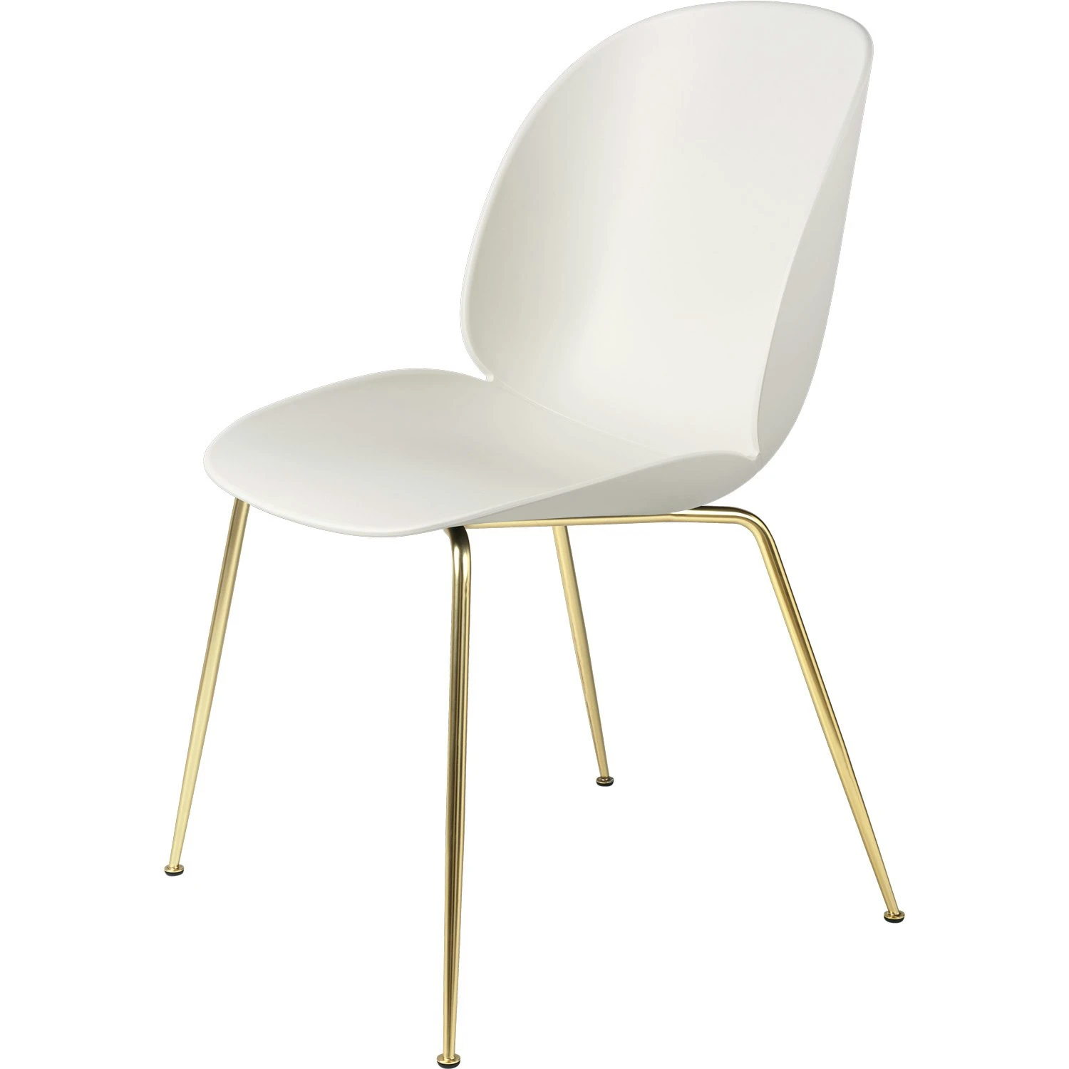 Gubi Beetle Dining Chair Un-upholstered, Conic Base Brass, Alabaster White
