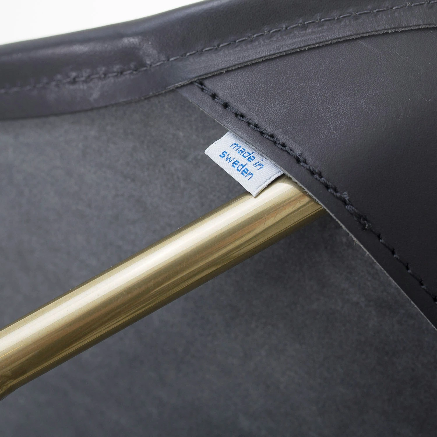 Der Lederbezug besteht aus ausschließlich pflanzlich gegerbtem Leder aus kräftiger Ochsenhaut mit einer Dicke zwischen 3,5 und 4 mm. Mit der Zeit erhält das Leder eine Patina, die es mit den Jahren schöner und schöner macht. Der Sessel wird in Schweden in Småland hergestellt.