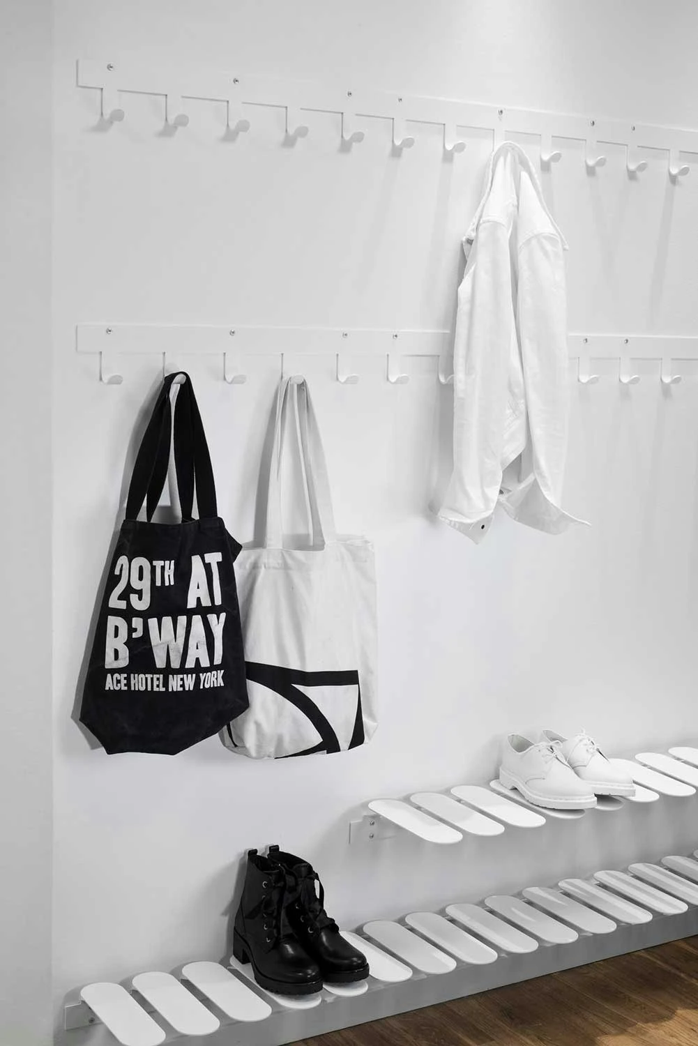 Only Hooks ist eine in Schweden hergestellte Hakenleiste, die von Gustav Rosén für Maze entworfen wurde. Sie kombiniert Einfachheit und Raffinesse und passt damit in den Flur, ins Badezimmer sowie in die Küche oder das Schlafzimmer. Hergestellt aus umweltfreundlichem pulverbeschichtetem Metall. Erhältlich in schwarz oder weiß.