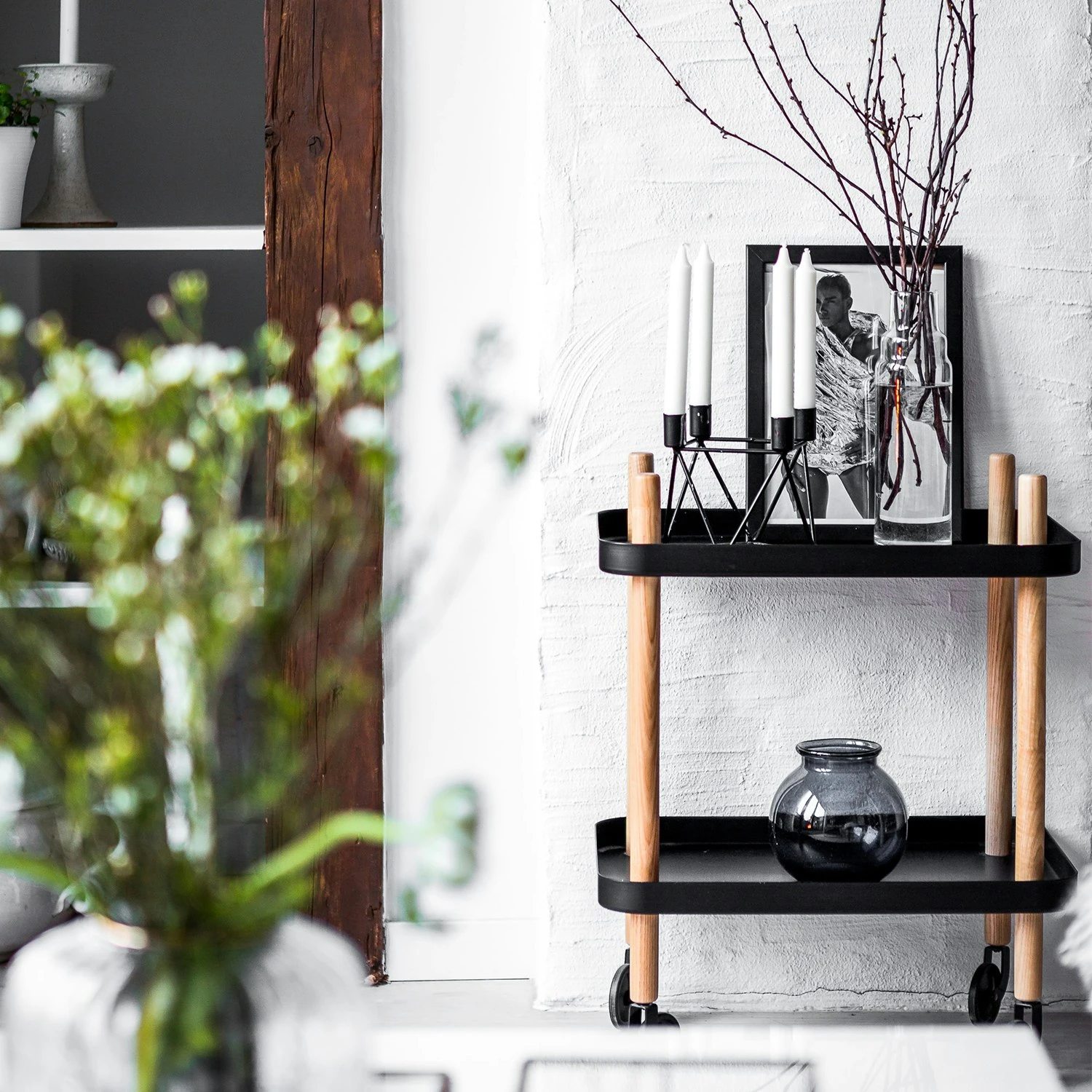 Der Block Tisch von Normann Copenhagen ist ein praktischer rechteckiger Tisch mit Rädern, der auch als Servierwagen oder Beistelltisch verwendet werden kann. Der Tisch besteht aus Eschenholz und pulverbeschichtetem Stahl. Die vier Räder des Wagens sind mit einem schwarzen Nylonring ausgestattet, der den Tisch stabil macht und guten Griff bietet. Die Griffe am Wagen erleichtern das Bewegen und ermöglichen die Verwendung des Tisches für verschiedene Zwecke, je nachdem, wie sich die Bedürfnisse im Laufe der Jahre ändern. Wähle zwischen mehreren Farben.