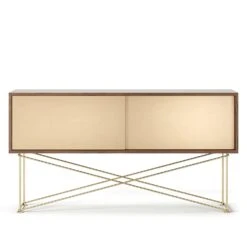 Vogue Fernsehbank 136 Cm Zwei Messing-Schiebetüren Und Gestell, Walnuss/Messing