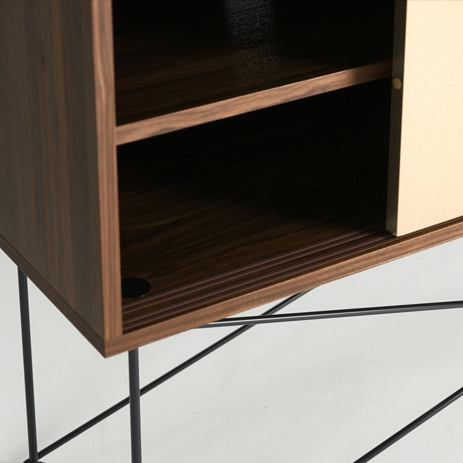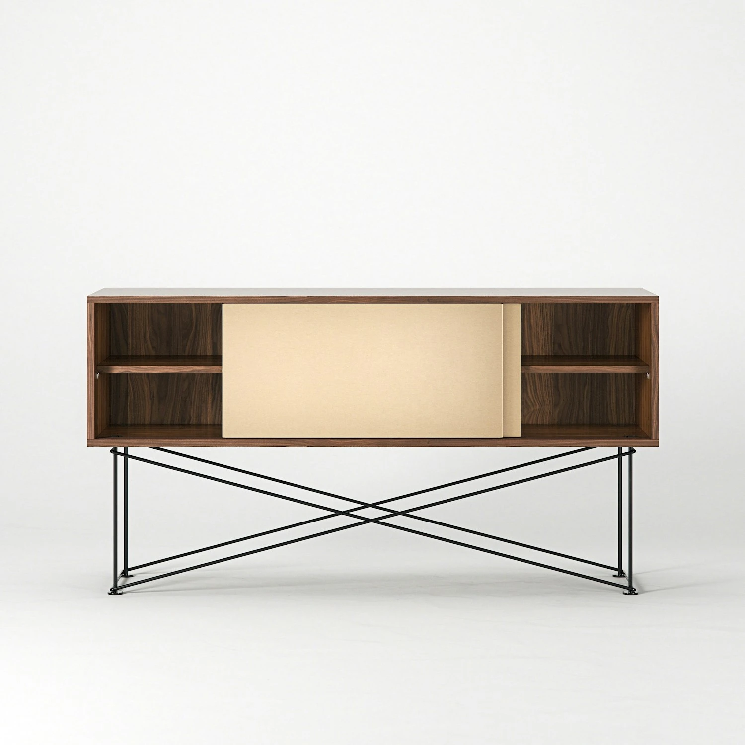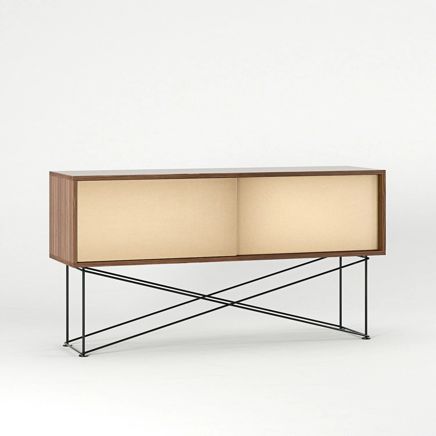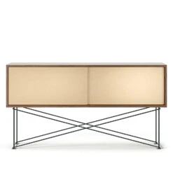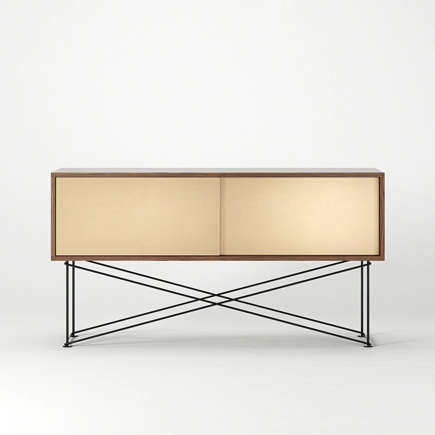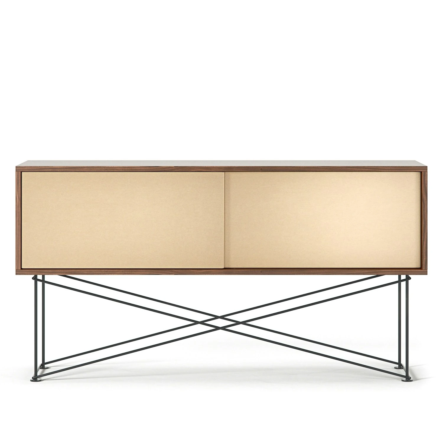 Vogue Fernsehbank 136 Cm Zwei Messing-Schiebetüren Und Gestell, Walnuss/Schwarz