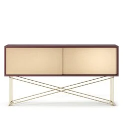 Die Vogue Fernsehbank ist ein Möbelstück, die praktisch als auch stilvoll ist. Hinter den Schiebetüren ist pro Abschnitt ein Regal versteckt. Sie sind abnehmbar für das Einräumen. Auf der Rückseite jedes Fachs befindet sich eine Öffnung, durch die die Fernsehkabel nach hinten gezogen werden können.