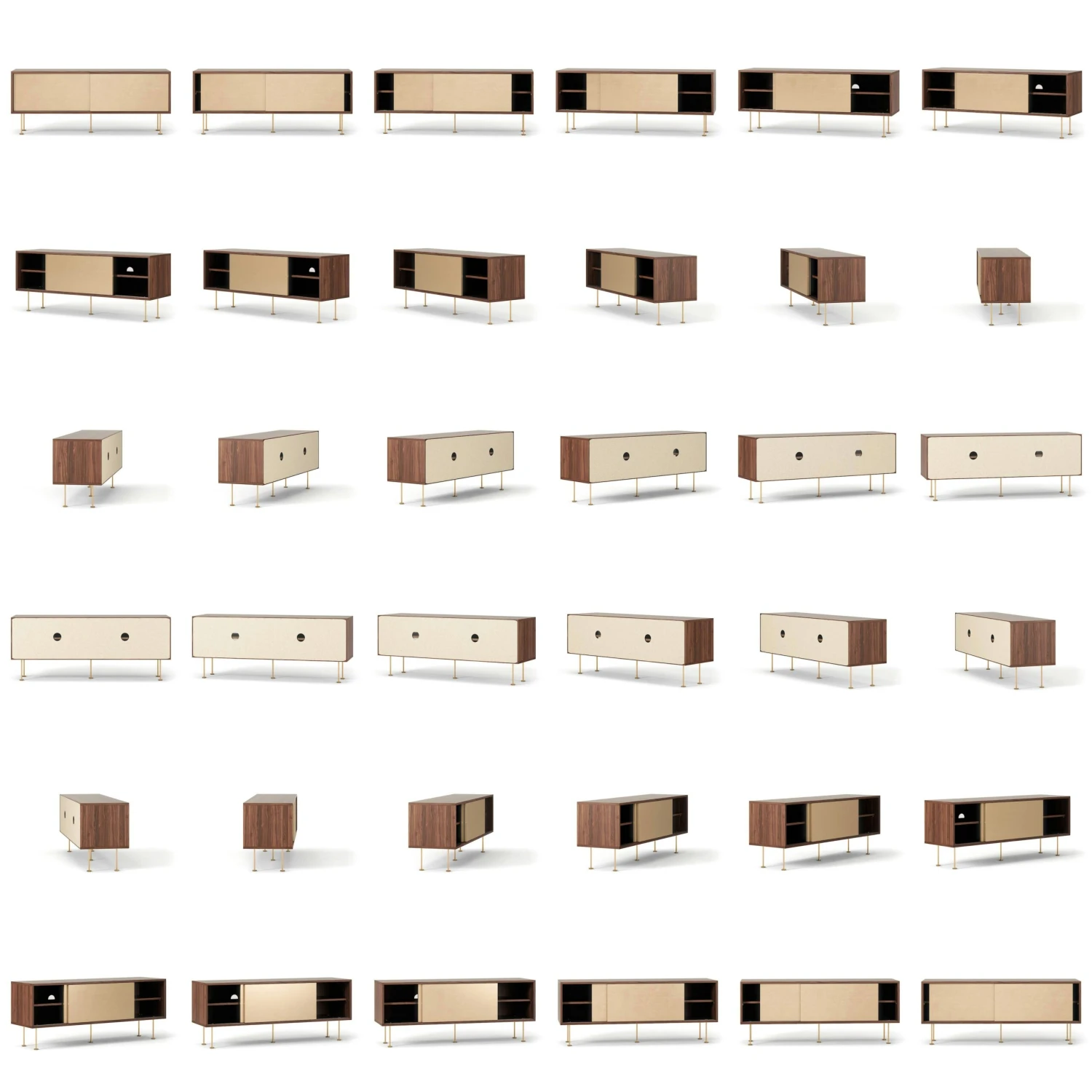Vogue Fernsehbank 136 Messingtüren Und Messingbeine, Walnuss/Messing