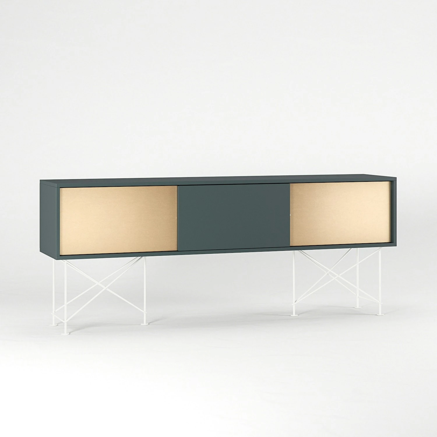 Die Vogue Fernsehbank ist ein Möbelstück, die praktisch als auch stilvoll ist. Hinter den Schiebetüren ist pro Abschnitt ein Regal versteckt. Sie sind abnehmbar für das Einräumen. Auf der Rückseite jedes Fachs befindet sich eine Öffnung, durch die die Fernsehkabel nach hinten gezogen werden können.