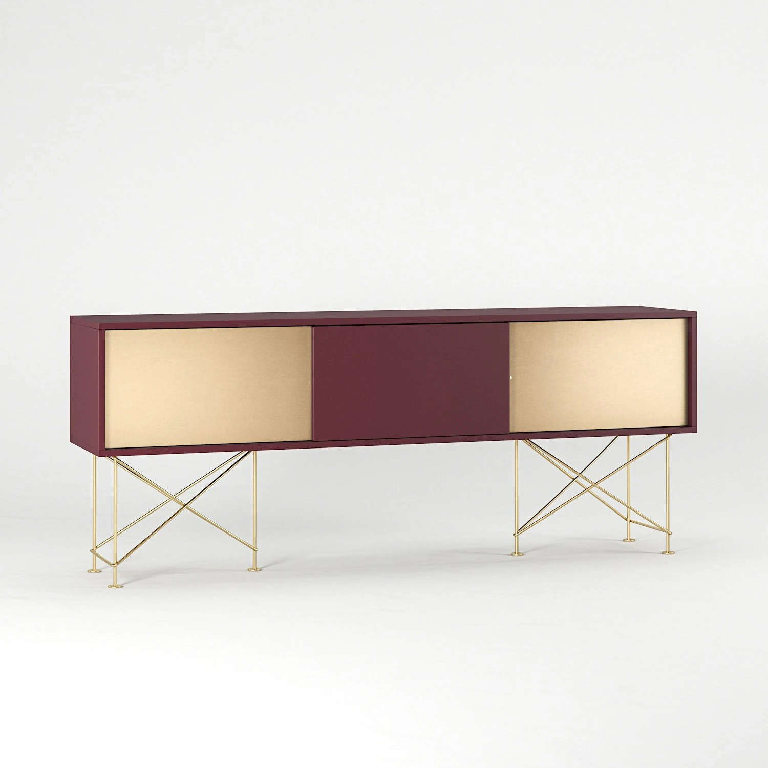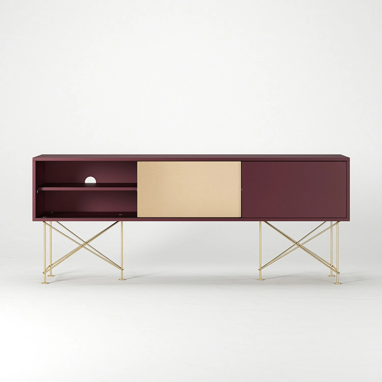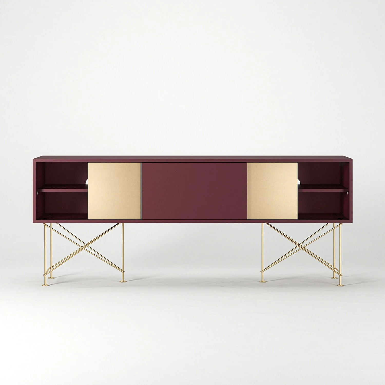 Die Vogue Fernsehbank ist ein Möbelstück, die praktisch als auch stilvoll ist. Hinter den Schiebetüren ist pro Abschnitt ein Regal versteckt. Sie sind abnehmbar für das Einräumen. Auf der Rückseite jedes Fachs befindet sich eine Öffnung, durch die die Fernsehkabel nach hinten gezogen werden können.