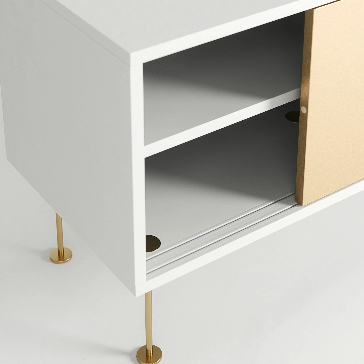 Das Lowboard der Vogue Serie von Decotique erfüllt alle Anforderungen an ein praktisches und stillvolles Möbelstück. Die schwedische Marke Decotique hat mit dem Vogue Sideboard ein Möbelstück entworfen, das dank der möglichen Farb- und Materialkombinationen in jedes Zuhause passt. Wähle deine Lieblingskombination aus trendigen Farben wie weinrot oder einem dezenten weiß. Alle Modelle haben eine messingfarbene-Schiebetür und elegante Messing-Beine, die 18,5 cm hoch sind – auszuwählen bleibt also die Farbe des Korpus.