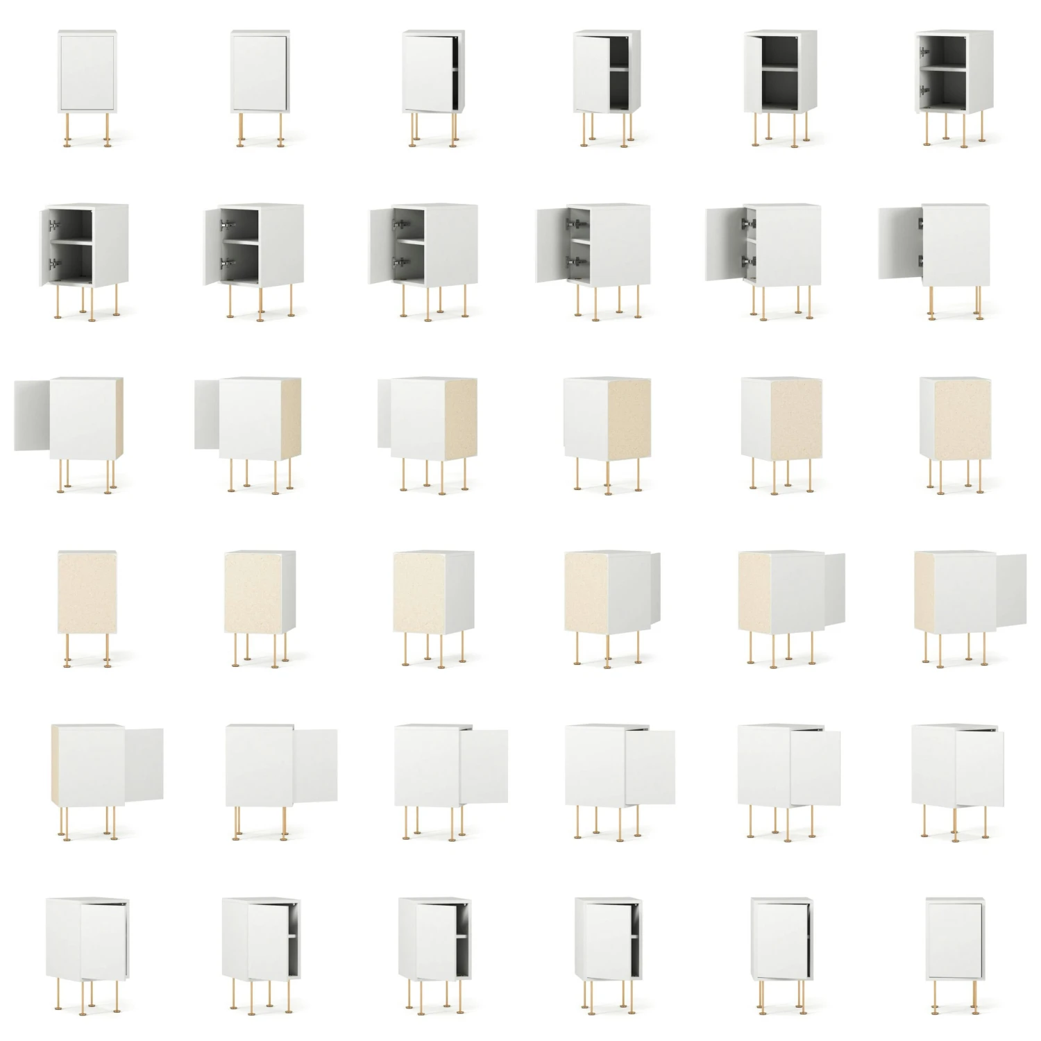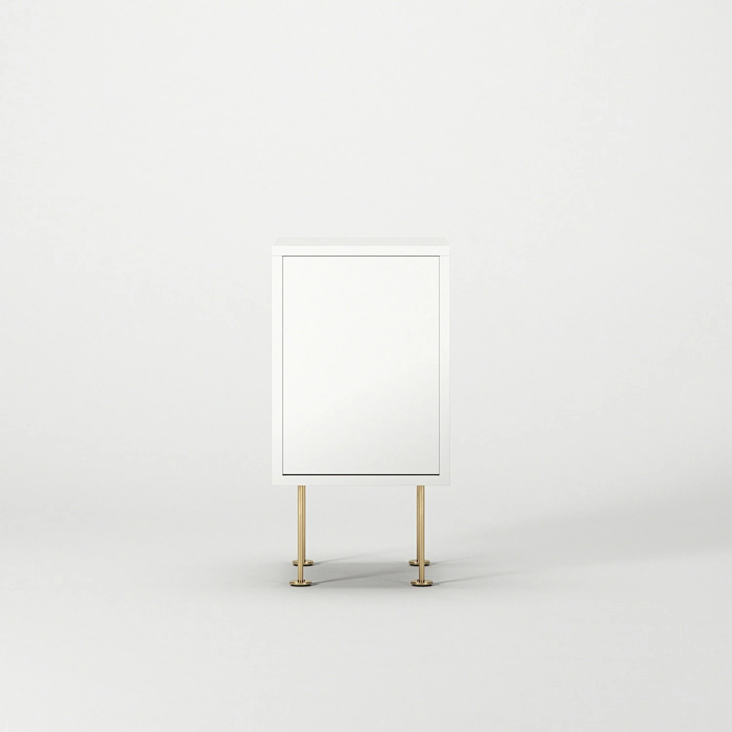 | Materialbeschreibung | Korpus aus lackiertem MDF, Beine aus Messing |