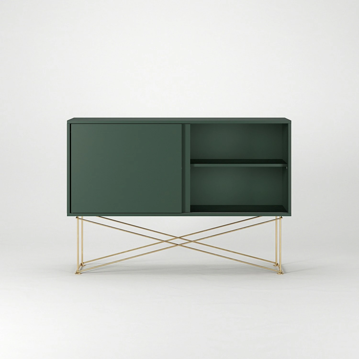 Vogue Sideboard von Decotique. Ein modernes und elegantes Sideboard im skandinavischen Design. Das Vogue Sideboard bietet zwei Funktionen im selben Möbelstück: praktischen Stauraum und Ablagefläche. Das Sideboard steht fest auf schönen Beinen aus Messing oder auf Beinen, die in drei verschiedenen Farben erhältlich sind. Wähle die Aluminiumversion mit Messingfront für ein besonders luxuriöses Gefühl. Im Inneren des Sideboards verbirgt sich ein verstellbares Regal.