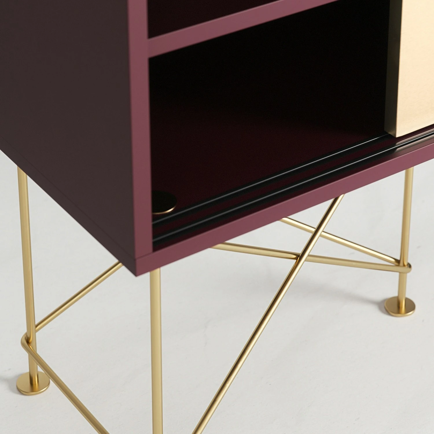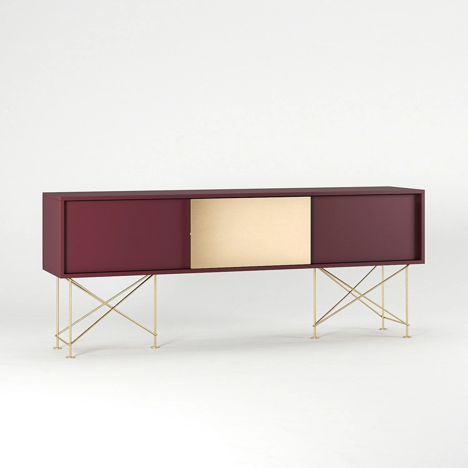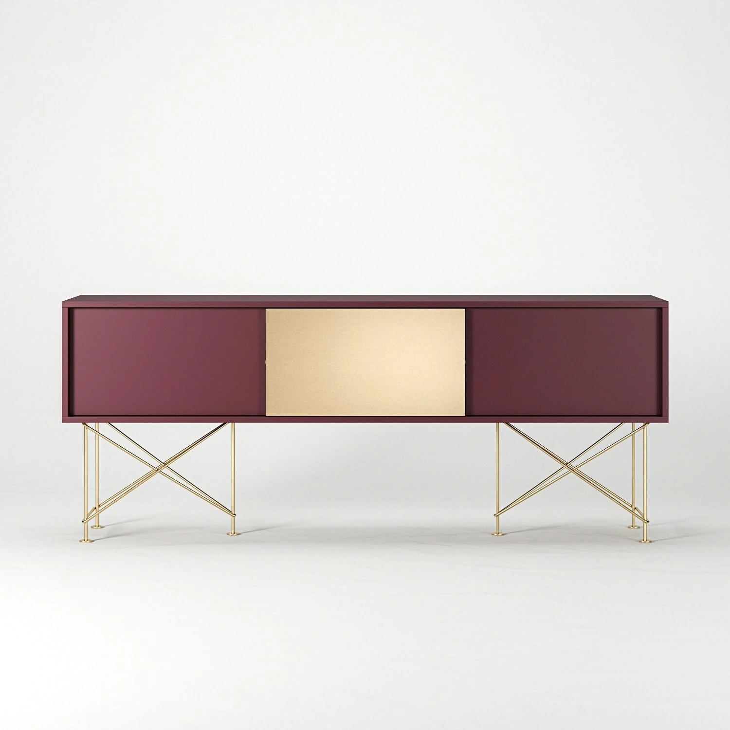 Das Sideboard ist in zwei verschiedenen Größen erhältlich: das kürzere ist 136cm lang und hat zwei Schiebetüren, das längere misst 180 cm und hat drei Schiebetüren. Die Ständer sind bei beiden Modellen 35cm hoch. Hinter jeder Schiebetüre befindet sich ein Fach mit einem Regal, welches für bestmöglichen Stauraum verstell- und herausnehmbar ist. Jedes Fach hat eine Öffnung auf der Rückseite, durch die Kabel gezogen und an der Hinterseite versteckt werden können. Die
