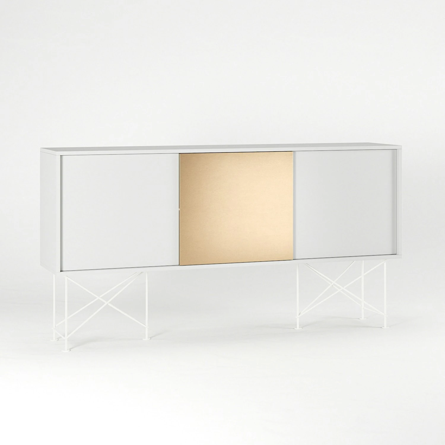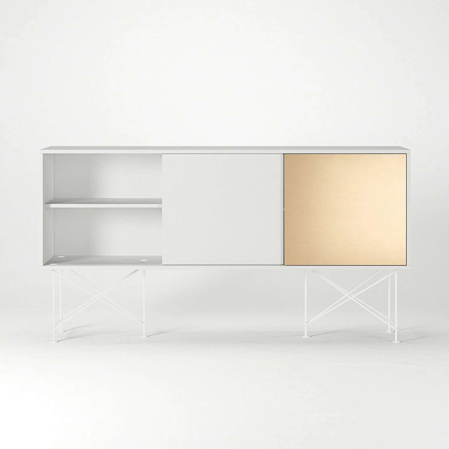 Vogue Sideboard 180 Eine Messingtüren Und Zwei Ständer, Weiß/Weiß