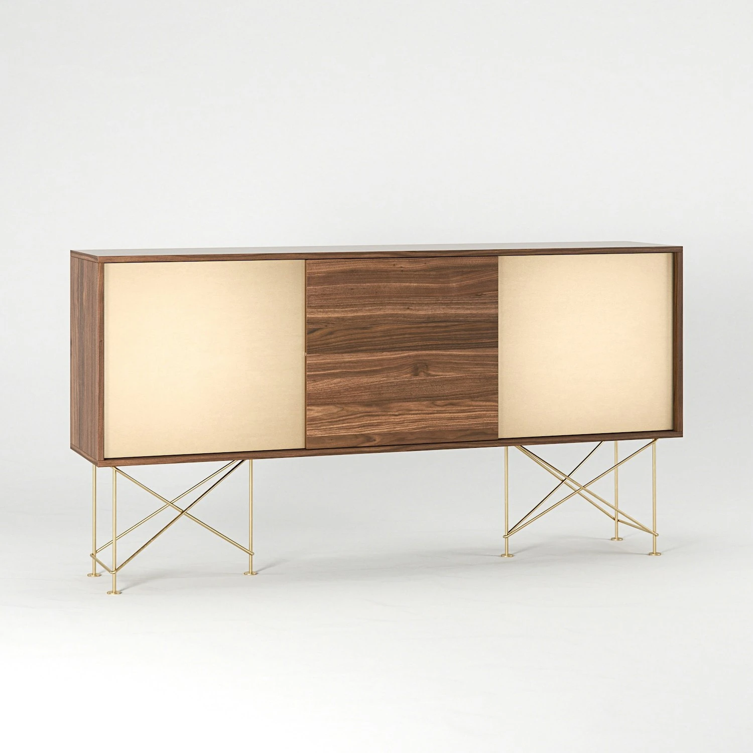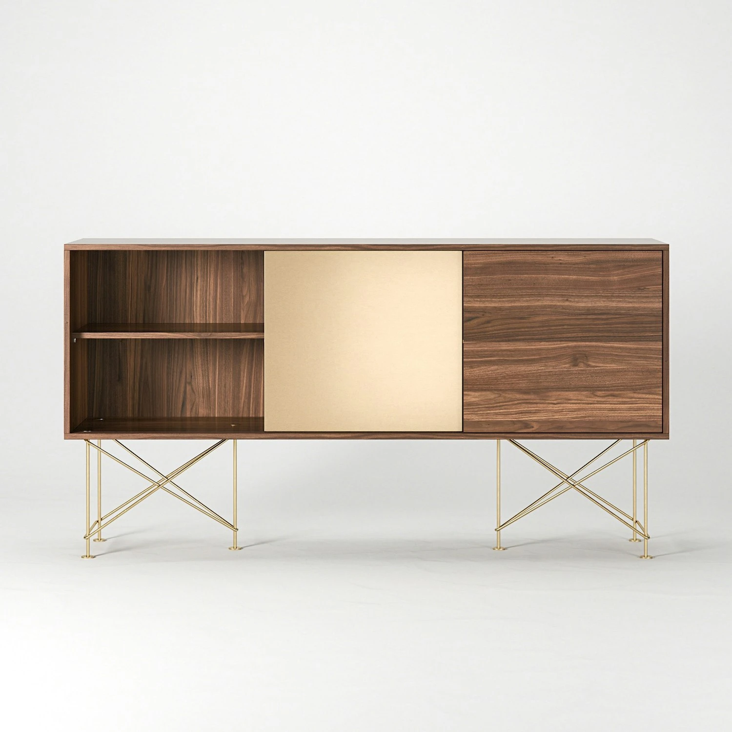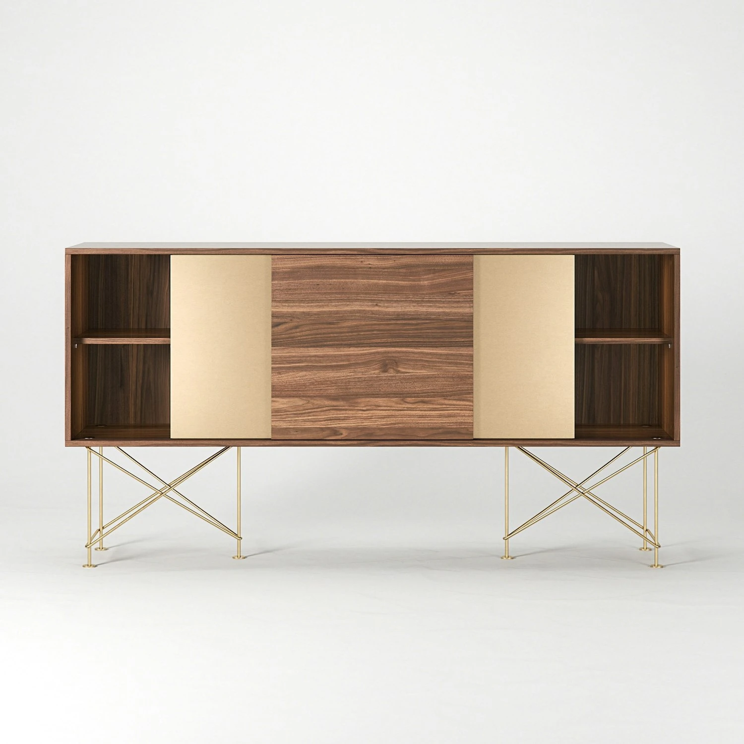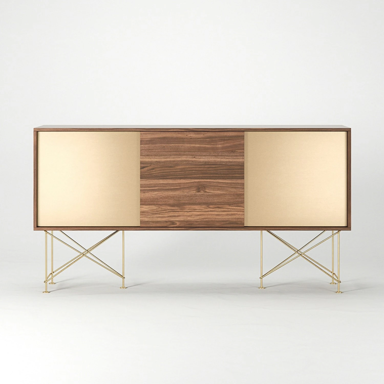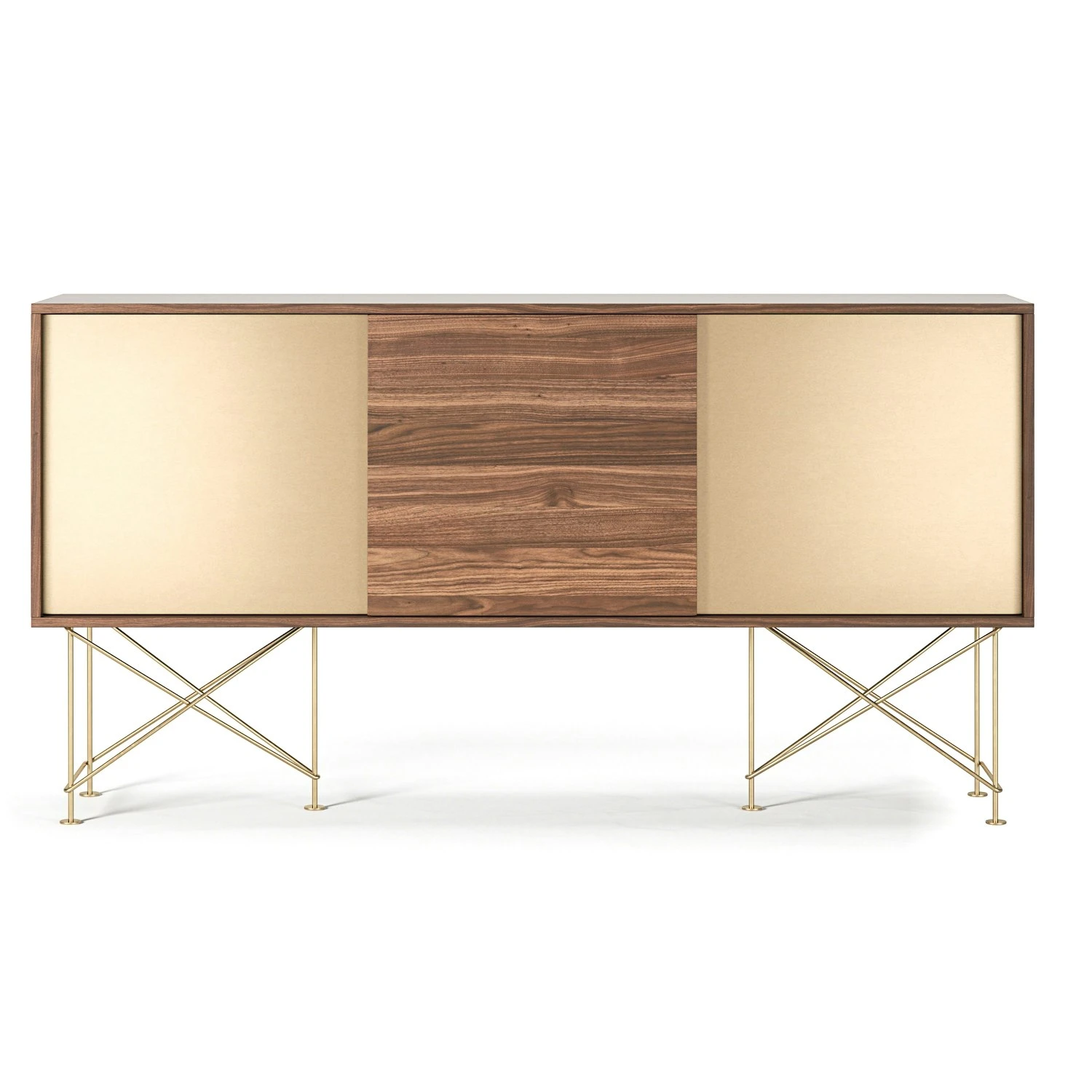 Vogue Sideboard 180 Zwei Messingtüren Und Zwei Ständer, Walnuss/Messing