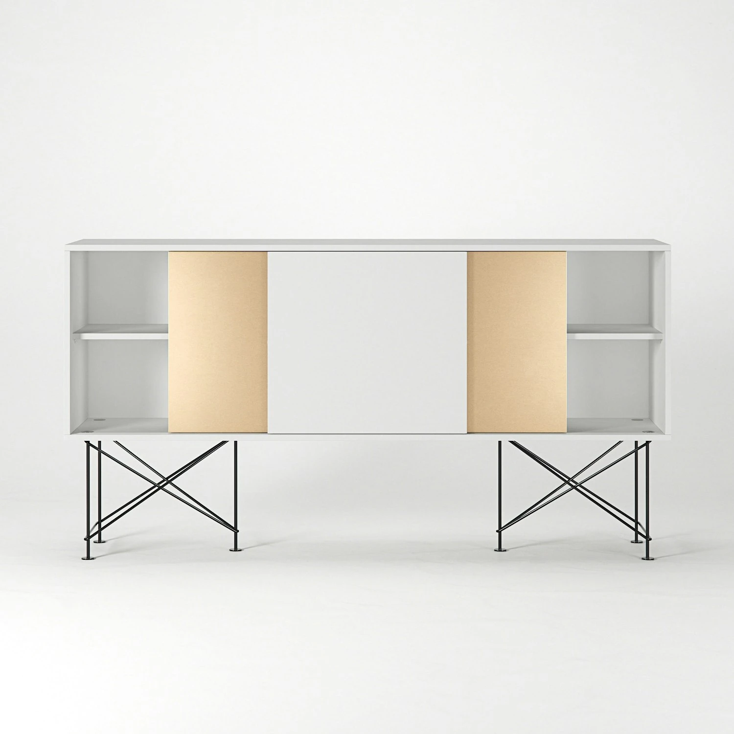 Vorderseite: Lackiertes MDF mit oder ohne Front aus messingfarbenem Aluminium.